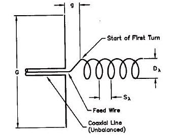 螺旋天線很簡單但非常有效,它以簡易的輻射體結構來提供增益。下圖是其尺寸的實例: