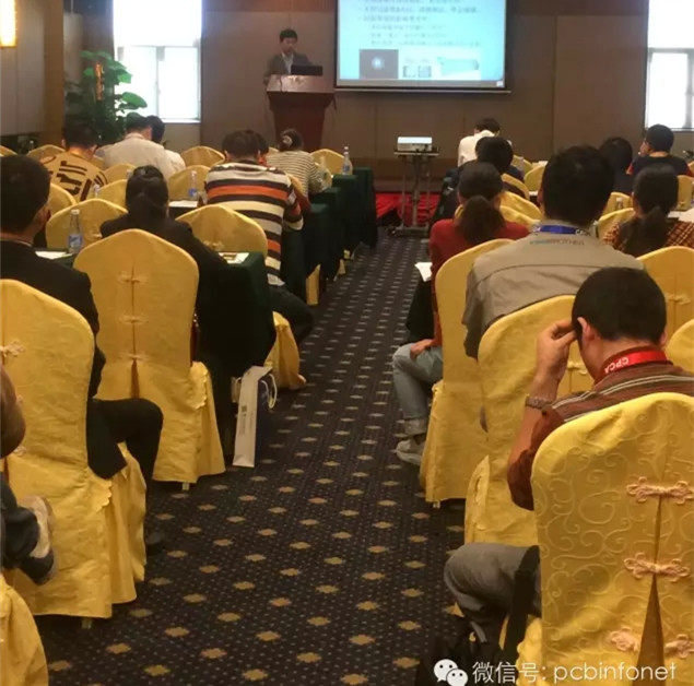7號會場共有5場演講,會場由陳良主持,演講者和演講主題分別為重慶方正密高電子周明鏑的《高密度無引線金手指的加工推廣》、廣東正業(yè)科技李勇的《活性炭濾芯現狀及新型高效活性炭濾芯的研發(fā)》、廣州興森快捷電路況東來的《ENEPIG金手指工藝的可行性研究 》、 汕頭超聲印制板孟凡義的《不同Pad對沉鎳金厚度影響的研究 》、深圳金百澤電子唐殿軍的《金手指與化學鎳金符合表面處理加工工究》/樊廷慧的《HEDP對化學鍍鎳的影響》。請看7號會場演講者們演講的精彩瞬間。