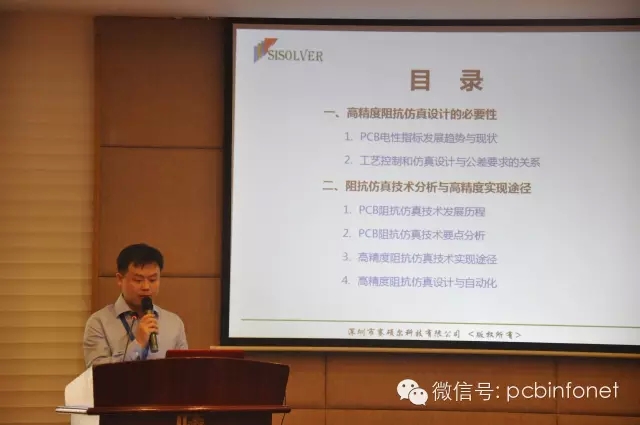 5號會場共有5場演講,會場由劉彬云主持,演講者和演講主題分別為博敏電子張豪的《PCB工程設計放錯探索》、重慶方正密高電子周明鏑的《內層+?/-8/阻抗宏志研究》、深圳賽碩爾科技何洪的《高精度阻抗仿真計算與設計過程自動化的實現》、廣州興森快捷電路程柳軍的《玻纖效應對高速信號的影響》、深圳景旺電子侯利娟的《微帶線結構阻抗研究》。請看5號會場演講者們的精彩瞬間。
